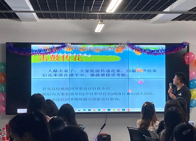 此外,本次活动组织了“击鼓传花”、“疯狂猜歌名”以及“你来比划我来猜”这三个游戏。“击鼓传花”环节,在主持人张鑫鹏同学的引导下,大家玩得不亦乐乎;此外,有的同学在“疯狂猜歌名”这个游戏中展现了自己的实力,成功获得了一等奖,并获得了相应的奖品;最后一个是经典的“你来比划我来猜”游戏,多组同学参与其中,不断融入游戏的快乐氛围中。