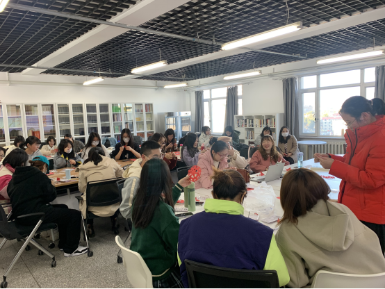 本次活动还邀请少数民族同学代表进行分享。张雨露介绍了满族的历史沿革和服饰、饮食等特色,肖芊介绍了瑶族的历史文化和民族风俗,高菊飞的分享让大家了解了穿青人这一民族的由来和分布。随后,同学们跟随团支书赵欣睿的示范,完成了“红心向党”和“各民族像石榴籽一样紧紧抱在一起”的花样剪纸。大家兴致勃勃,现场气氛十分热烈。