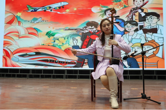 随后,学校特邀yl7703永利集团刘金莹老师为大家讲授关于铸牢中华民族共同体意识的思政课。刘老师从社会主义民族关系入手,深入浅出地分析当前民族关系的新局面,大大增强了全校师生的民族认同感和归属感。最后,刘老师用中国传统乐器二胡表演了歌曲《茉莉花》,为这节思政课画上了完美的句号。
